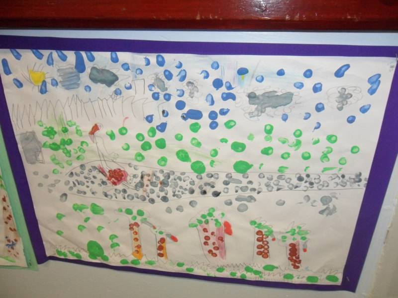 We painted landscapes in Art this week - but not just any landscape.......our school grounds were our inspiration! Our paint was applied using dots like the Impressionist painters. They look lovely on the wall. Here are some of them for you to see.
